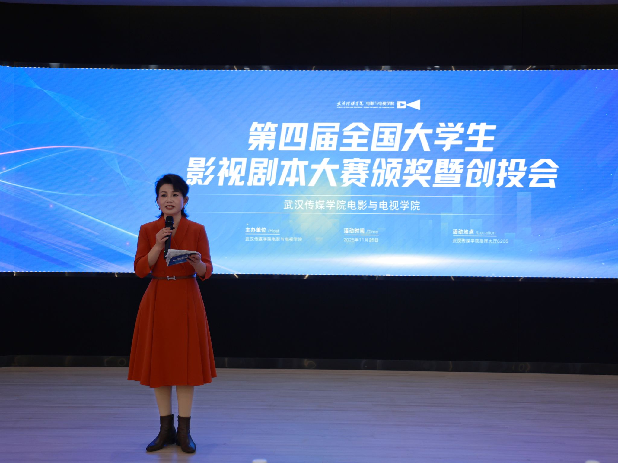 新闻与媒体中心网讯(文/记者 甘佳瑜 图/摄影记者 陈凯乐 邵叙源 王乐平 编辑/李一)2025年11月25日14点,第四届全国大学生影视剧本大赛颁奖暨创投会在武汉传媒学院武汉校区6号教学楼6205指挥大厅顺利举行。本次活动由武汉传媒学院电影与电视学院主办,活动以“聚焦青年原创力量,推动影视剧本从校园走向城市、走向市场”为核心宗旨,搭建学界与业界联动平台,发掘孵化优秀创作人才,助力中国影视内容高质量发展。