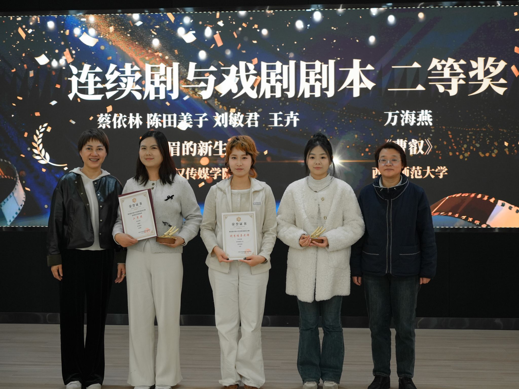 连续剧与戏剧剧本赛道三等奖由贰拾叁楼文化传媒有限公司主编潘涛先生颁发,南京传媒学院陈宇翔的《锦无言》、武汉传媒学院王子怡的《繁星》、南京传媒学院杨钧杰的《狮子吼·薪火篇》脱颖而出;二等奖由武汉传媒学院教学质量检测与评估中心主任李道霞老师、湖北广播电视台长江华晟影视公司总经理何怡君女士联合颁发,武汉传媒学院蔡依林团队作品《凤眉的新生活》与西华师范大学万海燕的《曹叡》获此殊荣;该赛道一等奖由武汉传媒学院校长王爱民老师颁奖,华中师范大学蒋达辉的《人生如煮》登顶。
