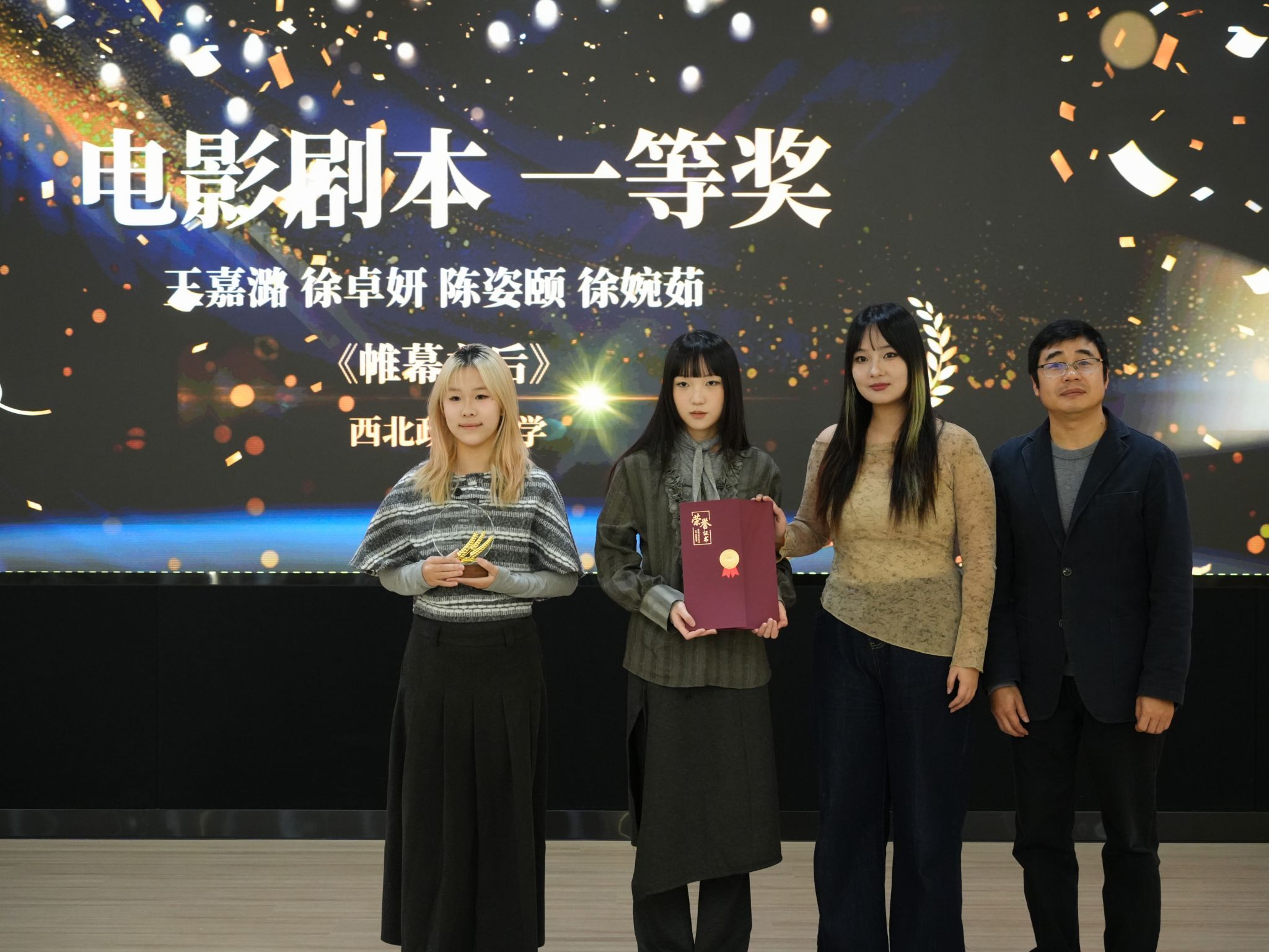 颁奖仪式环节,现场依次揭晓三大赛道各奖项。电影剧本赛道三等奖由湖北文投致美传媒内容事业部总经理陈蕾女士颁发,天津师范大学刘慧的《执念》、中国传媒大学刘子瑾的《带吴钩》、青岛科技大学孙晓琳的《恶果》获该奖项;二等奖由武汉传媒学院科研与创作处副处长陈杰老师、电影与电视学院副院长李华老师共同颁奖,获奖作品是厦门大学李姝锦的《28号绿》与澳门科技大学林灏的《你瞒我瞒》;上海戏剧学院博士生导师万传法教授为一等奖颁奖,西北政法大学王嘉潞团队凭借作品《帷幕之后》摘得该赛道最高荣誉。