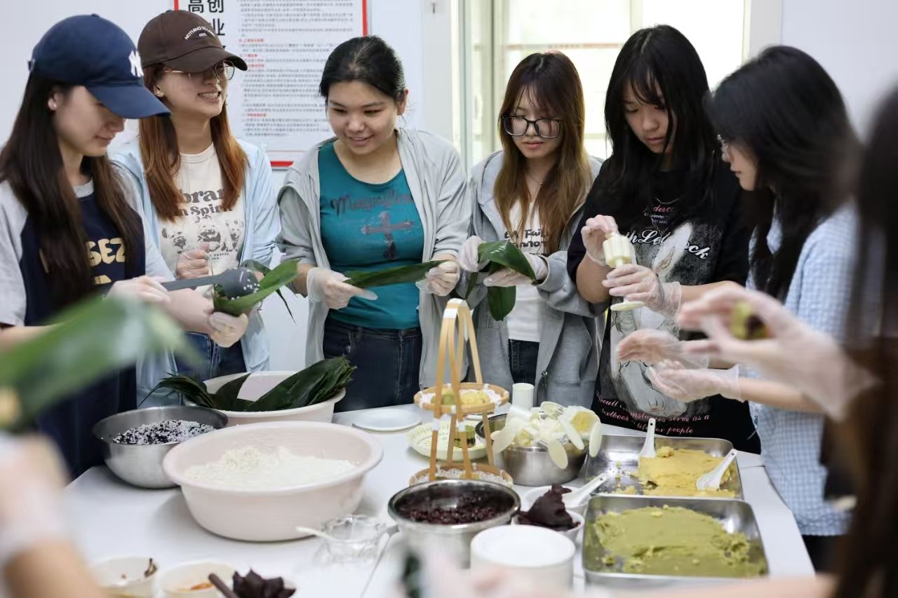 我院傅楚珺同学表示:“端午节是重要的传统节日,我们希望通过亲手包粽子、做绿豆糕这种沉浸式体验,让大家更深入地感受传统文化的魅力。和老师同学们一起动手,边制作边分享家乡的端午习俗和趣事,不仅增进了交流,更让大家在繁忙的学习之余放松了心情,找到了浓浓的归属感,感觉特别有意义。”