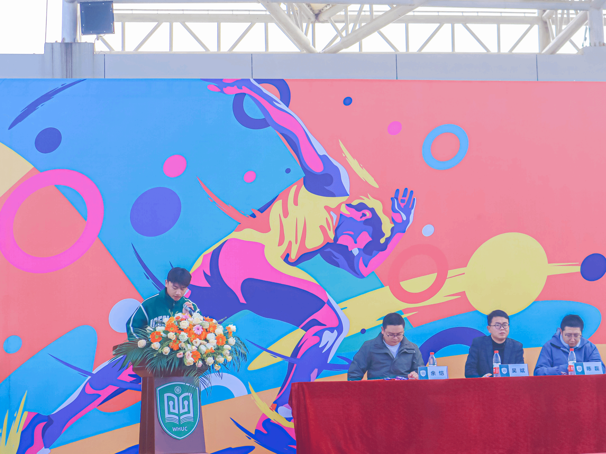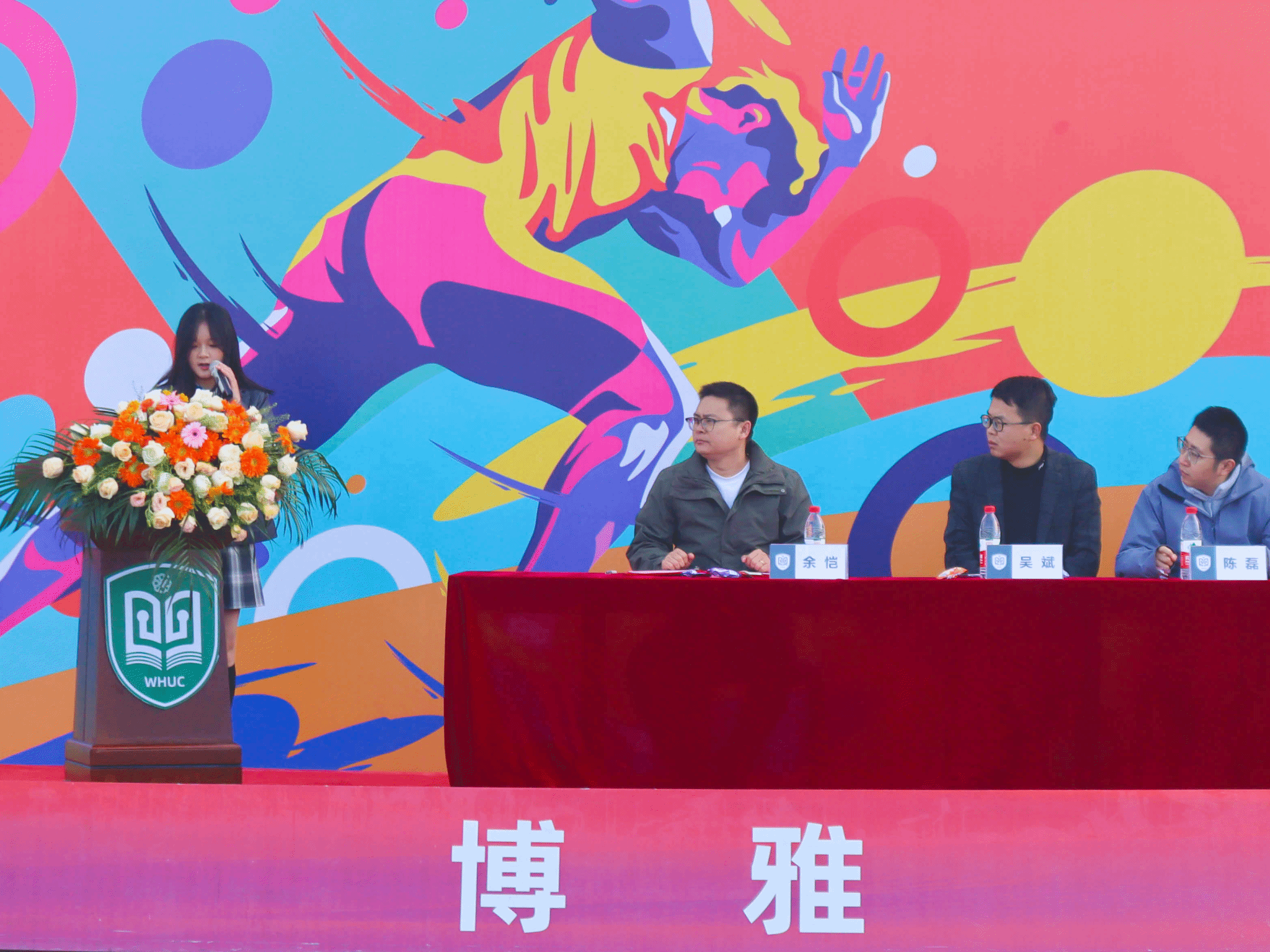 开幕式最后,由武汉传媒学院党委副书记、常务副校长宗微老师致开幕词。宗微老师说道:“首先,我预祝本届运动会顺利召开,并且向为本次运动会付出辛勤劳动的教职工和同学们表示衷心感谢。同时我希望借此机会向同学们强调体育锻炼对青少年全面发展的重要性。体育是“五育并举”之根基,它促进同学们身体健康,培养运动习惯的同时也能提高学习效率,实现全面发展。因此,我呼吁大家都积极地加入到体育运动中来。”