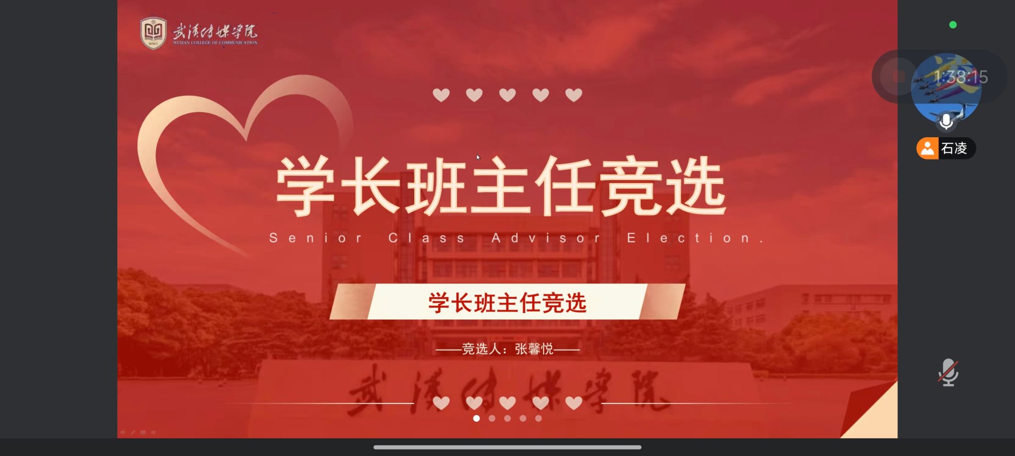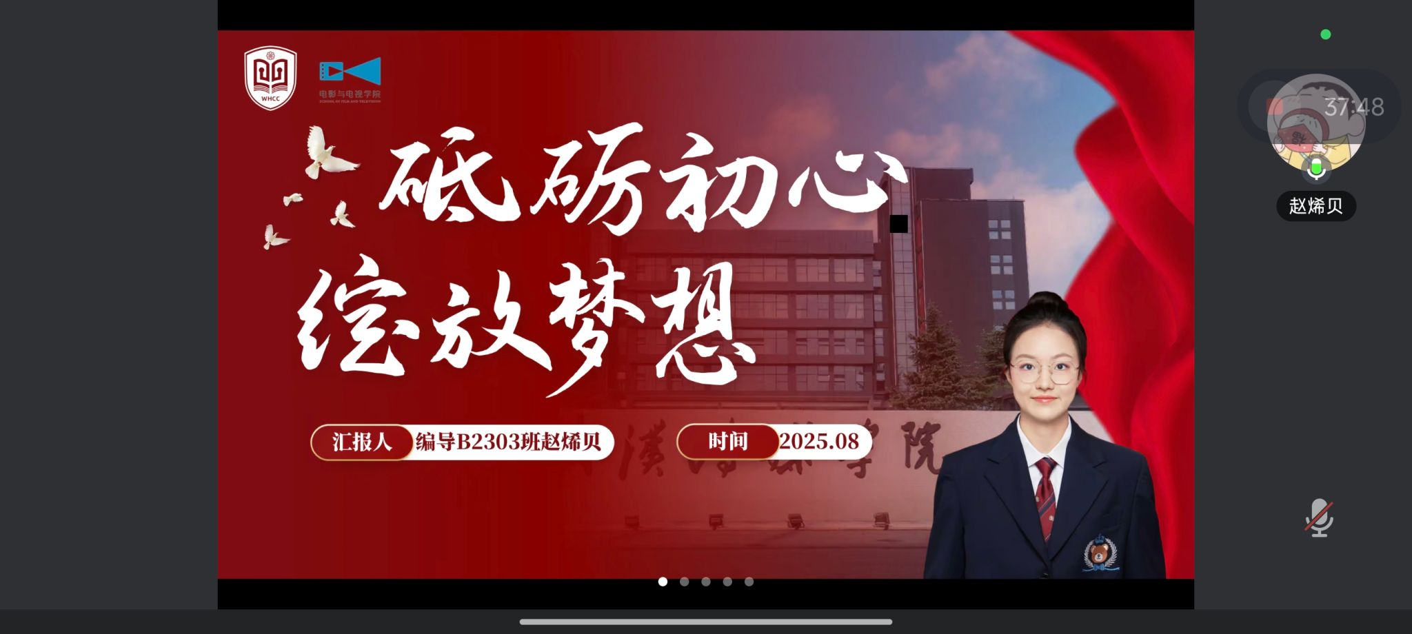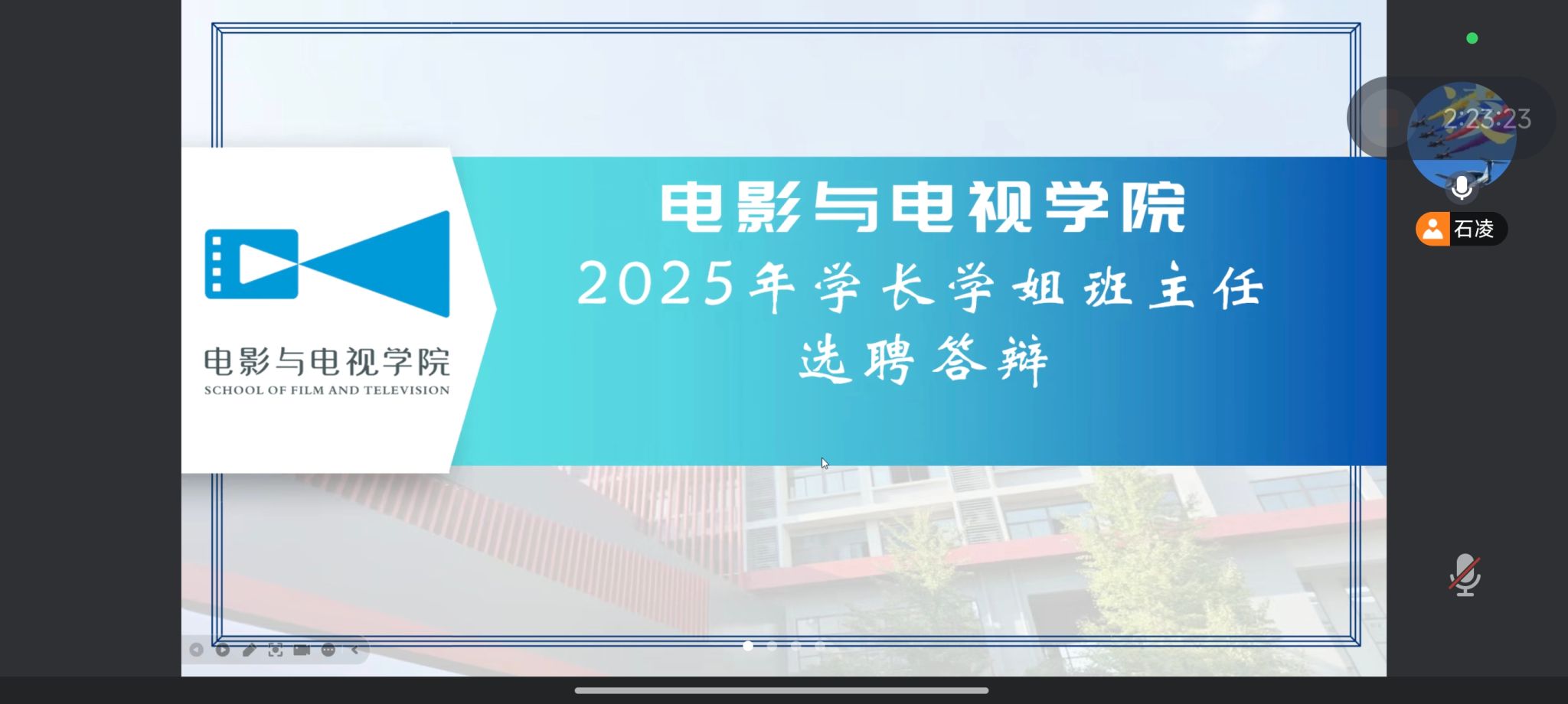 新闻与媒体中心网讯(文/记者 甘佳瑜 图/摄影记者 甘佳瑜 编辑/陈栎依)2025年8月22日下午2点,武汉传媒学院电影与电视学院在线上开展了2025级学长学姐辅导制竞选答辩。本次竞选答辩旨在为我院新生搭建优质成长帮扶平台,充分发挥高年级学生的榜样引领作用,助力新生快速适应校园生活与专业学习,进一步营造“传帮带”的优良学风,培育互助共进的校园文化氛围。