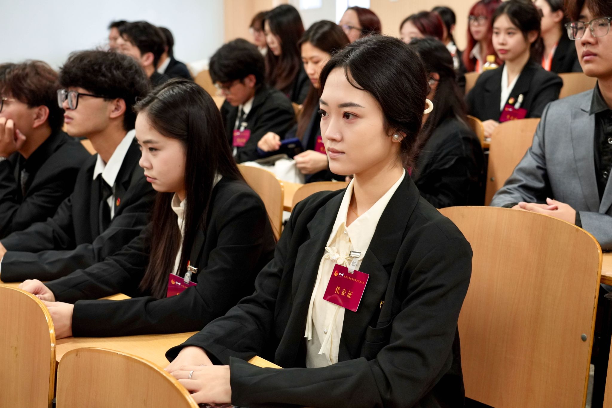 闭幕式上,全体代表共同学习了国家主席习近平在《2025年中国人民抗日战争暨世界反法西斯战争胜利纪念日阅兵》上的重要讲话精神。学工科副科长兼团委书记石凌老师在总结讲话中表示,本次大会是学院学生工作的重要里程碑,希望同学们以信念为笔书写时代故事;以团结为镜映照集体力量;以担当为尺丈量青春价值。不忘初心、牢记使命,为实现民族复兴的伟大梦想和学院更美好的明天而努力奋斗。