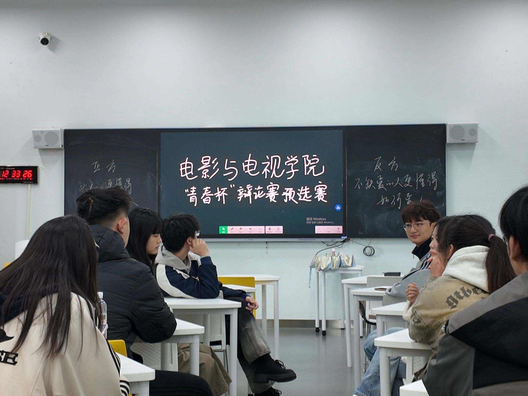 新闻与媒体中心网讯(文/由张铭宇供稿 图/由张铭宇提供 编辑/张呈瑞 责编/李一)为丰富校园文化生活,锤炼学生思辨能力与语言表达能力,武汉传媒学院第九届“青春杯”辩论赛电影与电视学院预选赛于2026年3月24日12点在武汉校区7号教学楼7201教室顺利举行。本次预选赛旨在积极响应我校第九届“青春杯”辩论赛的赛事要求,择优选拔并组建电影与电视学院学生代表队参加校级比赛。