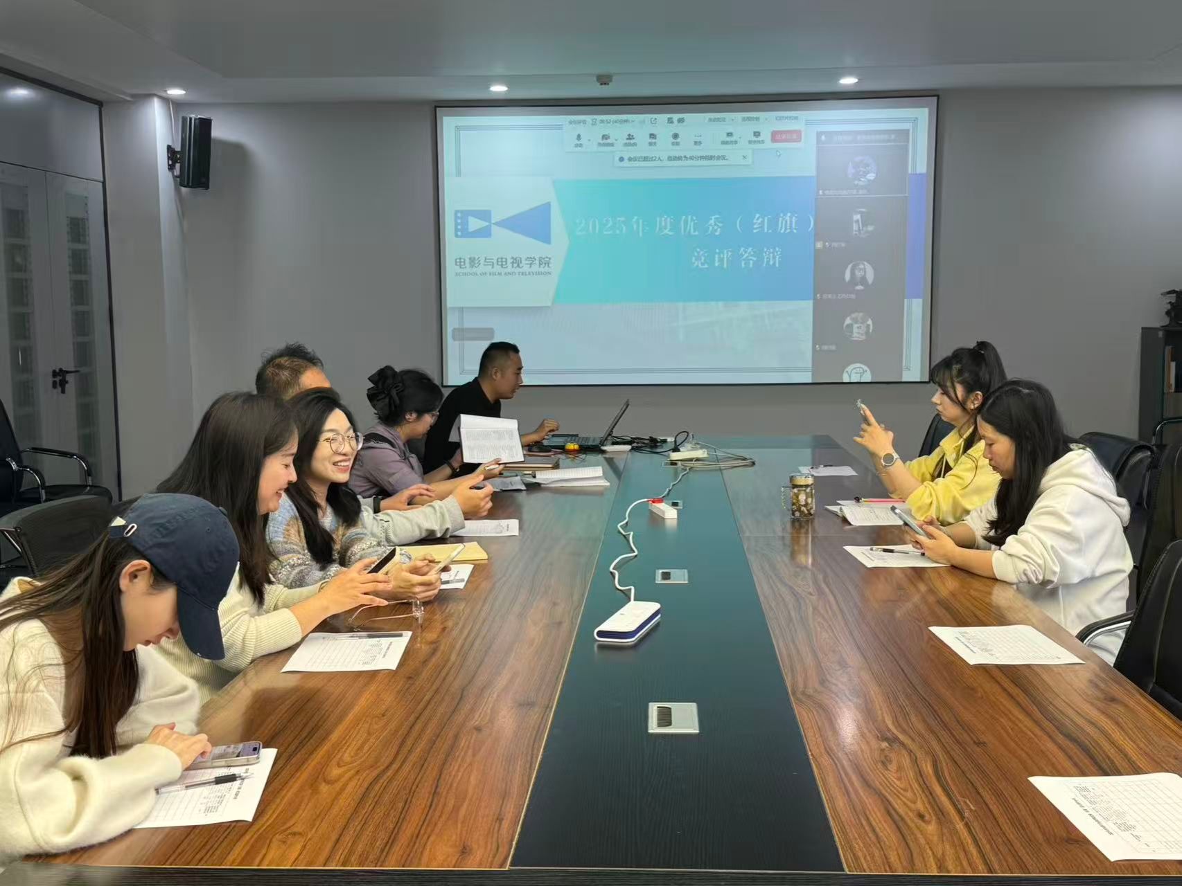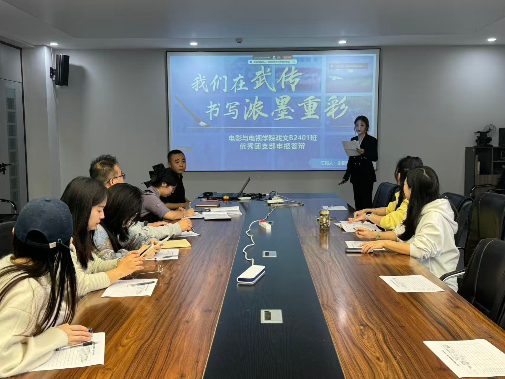 新闻与媒体中心网讯(文/由刘杭供稿 图/由刘曰笑拍摄)2026年4月8日中午12时,武汉传媒学院电影与电视学院五四优秀(红旗)团支部竞评活动顺利召开。本次活动采用“线上线下相结合”形式举行,武汉校区参评团支部于武汉传媒学院(武汉校区)六号教学楼6313会议室现场参评,大悟校区参评团支部通过腾讯会议线上同步参加。出席并参与本次竞评的评委老师有电影与电视学院团委书记龚航老师、学院辅导员代表。