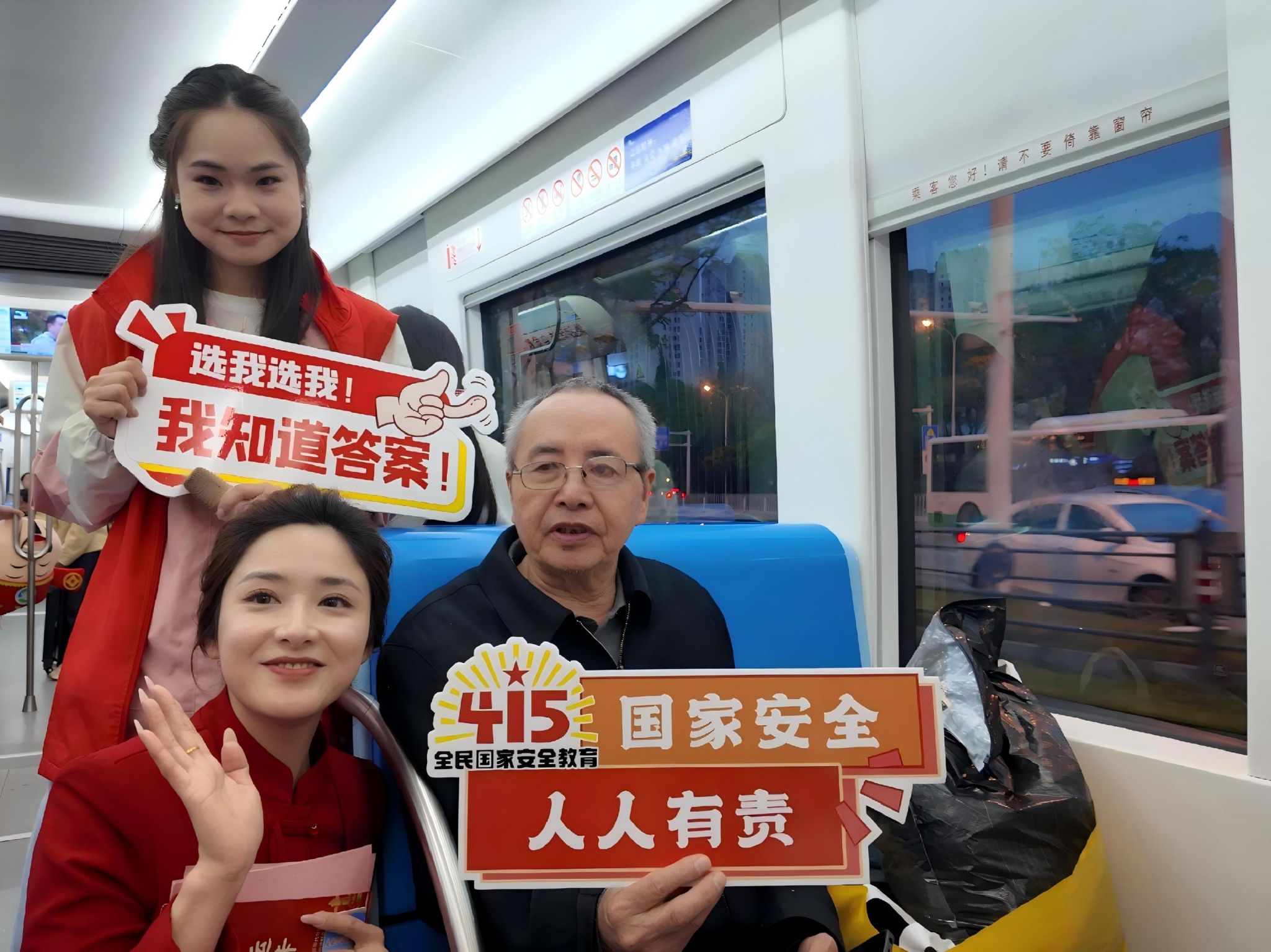 活动现场,电影与电视学院师生团队和武汉电视台主持人向乘客介绍了光谷有轨电车的发展历程及运营特色,并结合国家安全主题,分享了与日常生活息息相关的法律常识。主持人以生动活泼的语言,讲述了自己参与国家安全普法宣传的经历,拉近了与乘客的距离,通过趣味问答等方式,让乘客在轻松的氛围中加深对国家安全的理解。