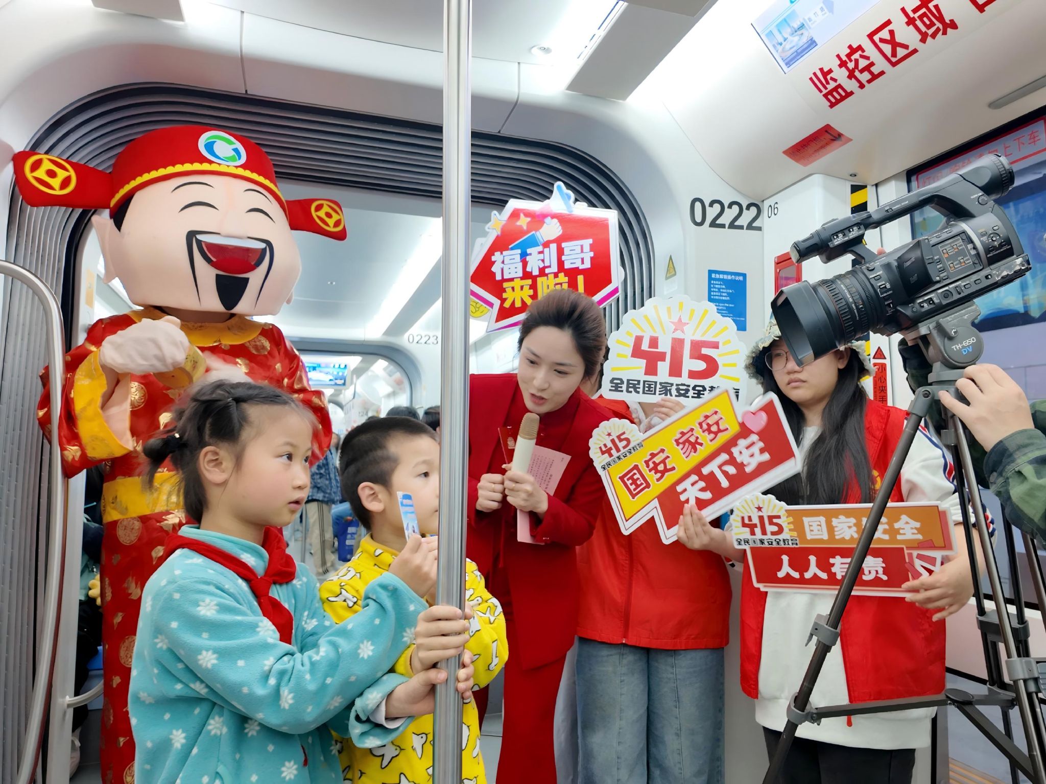 新闻与媒体中心网讯(图/刘杭)2026年4月15日是第十一个“全民国家安全教育日”。为深入贯彻落实总体国家安全观,增强全民国家安全意识,武汉传媒学院电影与电视学院师生团队于4月14日18:00参与由光谷现代有轨电车策划组织的国家安全主题宣传活动。活动在国家安全主题车站光谷天地站及光谷量子号“国安号”列车上开展,旨在通过贴近市民的普法形式,营造“国家安全、人人有责”的良好氛围。