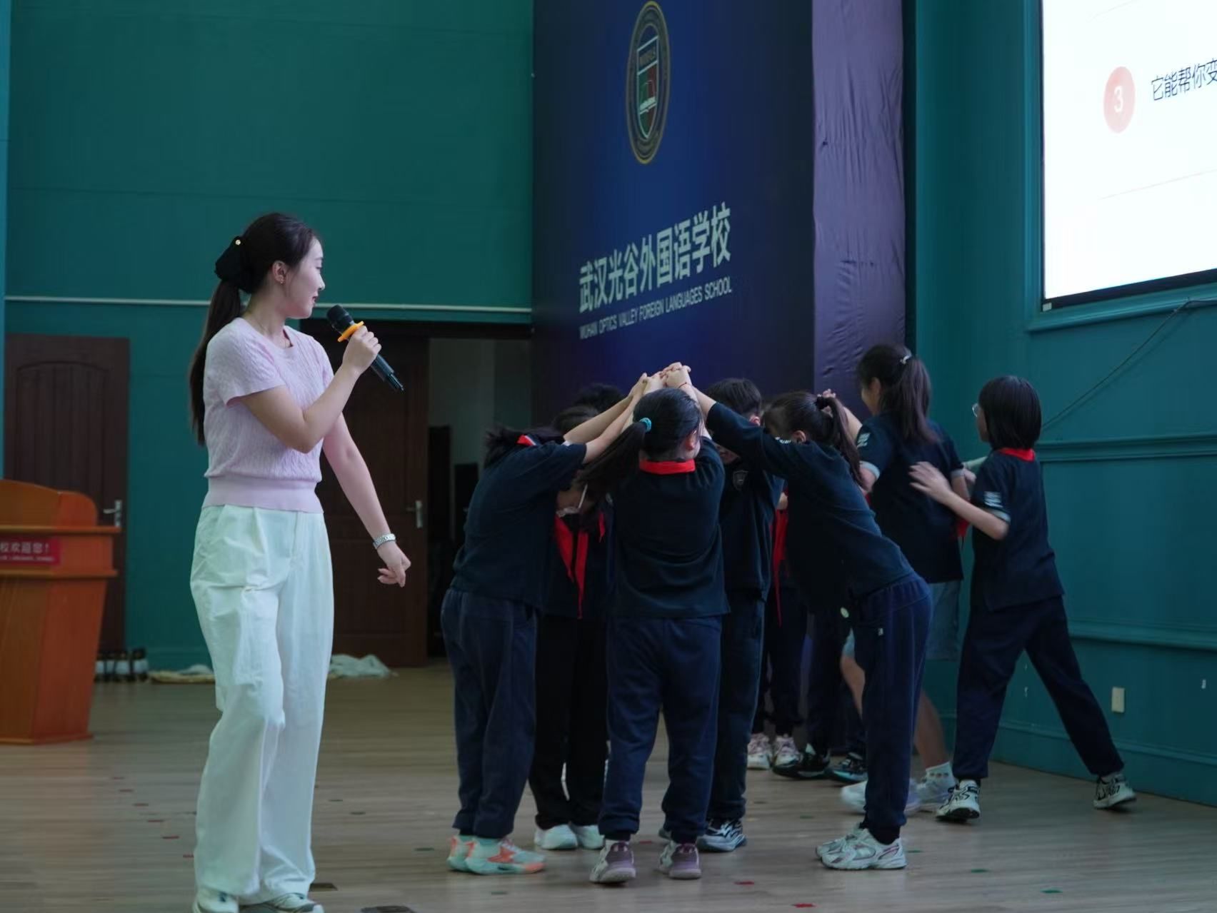 新闻与媒体中心网讯(文/记者 郑姝向绾 图/摄影记者 梁晓媛 编辑/李马莹)为深化美育实践,开展青少年戏剧艺术启蒙,武汉传媒学院电影与电视学院戏剧教育系以教育部提出的“开齐开足美育课程”要求为指导,策划了“戏剧进校园”系列活动,旨在用自身资源优势,通过戏剧艺术这一综合性美育载体,帮助中小学生提升审美素养、激发创造潜能。此活动已成为戏剧教育系专业建设特色实践系列。戏剧教育系师生团队于2025年10月9日至10日又一次“进校园”,走进武汉光谷外国语学校,举办了以“戏剧润童心·艺术伴成长”为主题的系列活动,为该校四年级近二百名师生带来一场沉浸式戏剧体验。