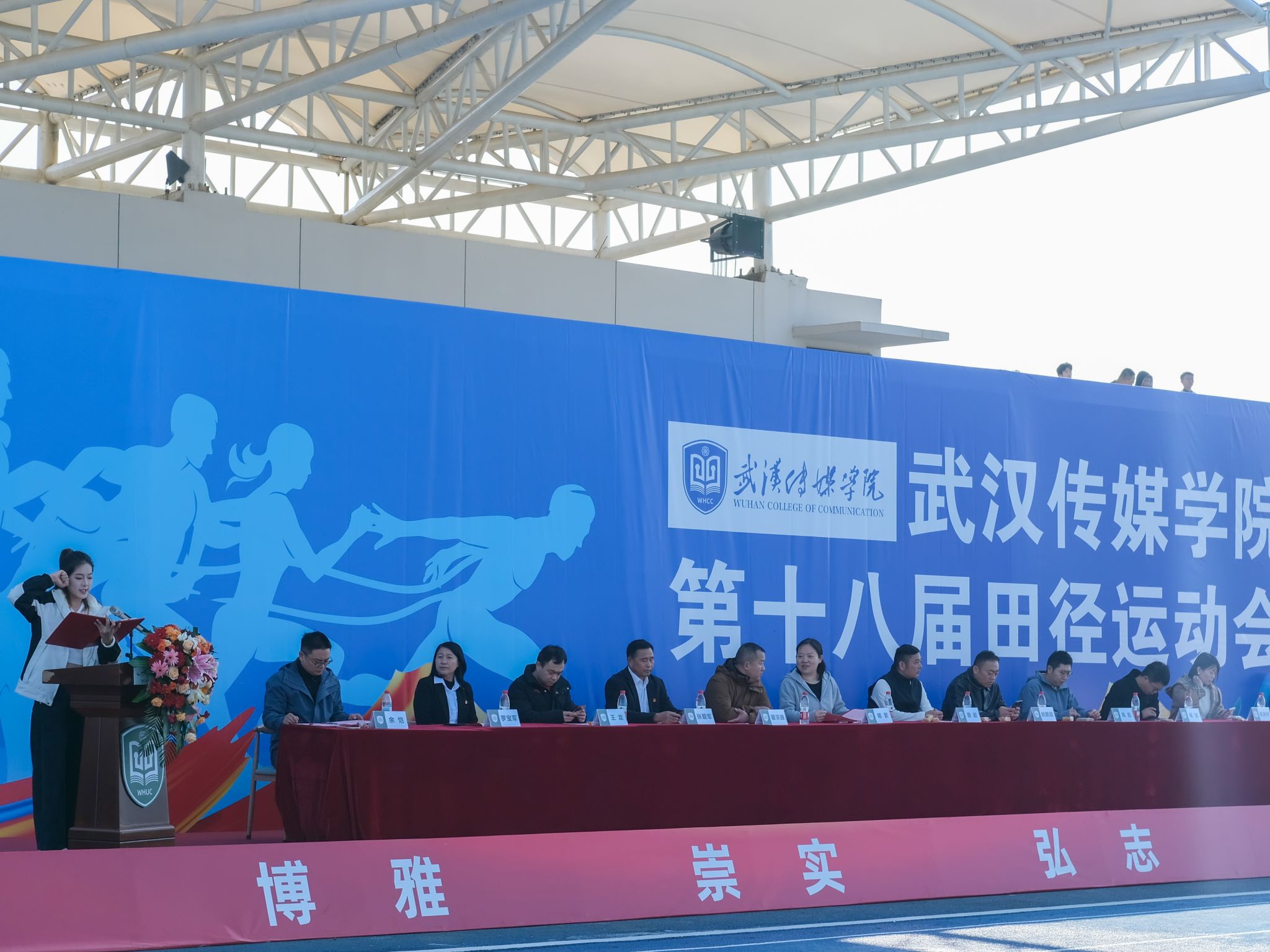 新闻与媒体中心网讯(文/见习记者 乔梦琪 图/摄影记者 林凯珊 王宏博 编辑/彭于芯 责编/李马莹)为丰富校园文化生活,持续推进体育活动开展,弘扬体育精神,培养学生团队协作意识。2025年11月13日9点,武汉传媒学院第十八届田径运动会(大悟校区)开幕式顺利举行。出席本次开幕式的领导有校党委副书记、纪委书记蒋萦老师,党委学生工作部部长余恺老师,校团委书记瞿宗巍老师以及党政办、教务处和各教学单位的党政领导,学生代表及运动员。