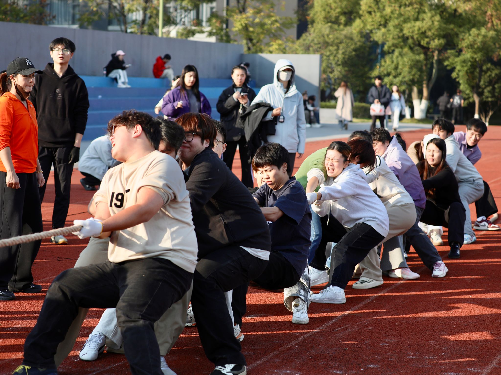 下午2点,学生组比赛接力进行。比赛项目兼顾了个人能力与团队协作,既有竞技性又不失趣味。同学们热情高涨,在奔跑、协作与拼搏中全情投入,既锻炼了体魄,也加深了彼此间的信任与友谊。