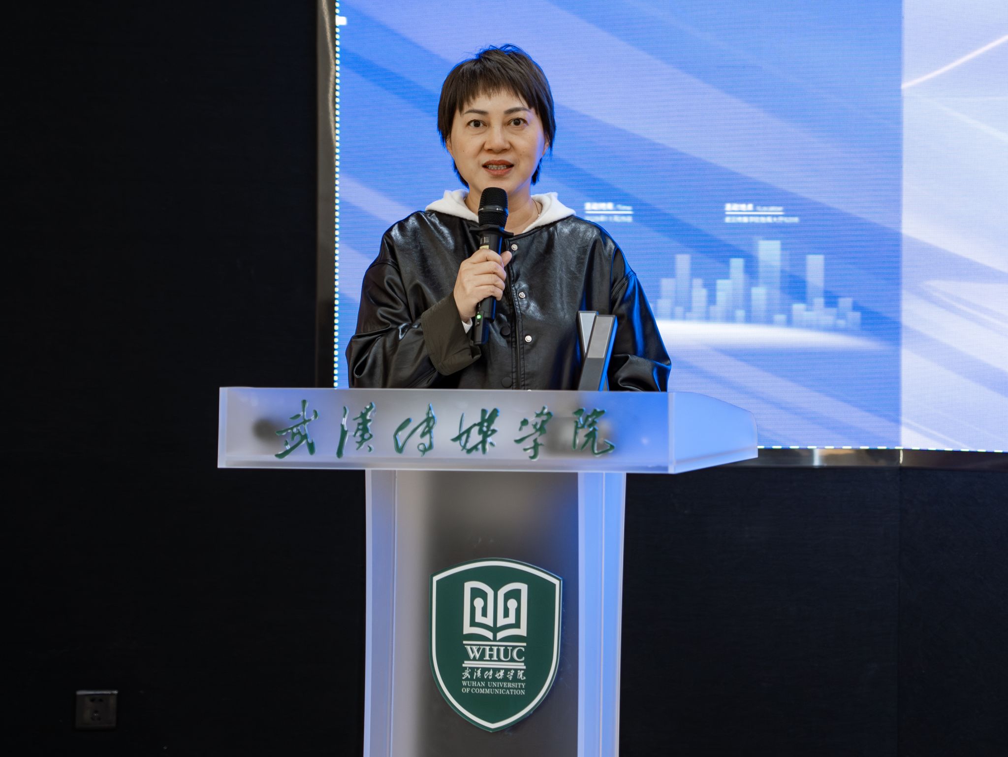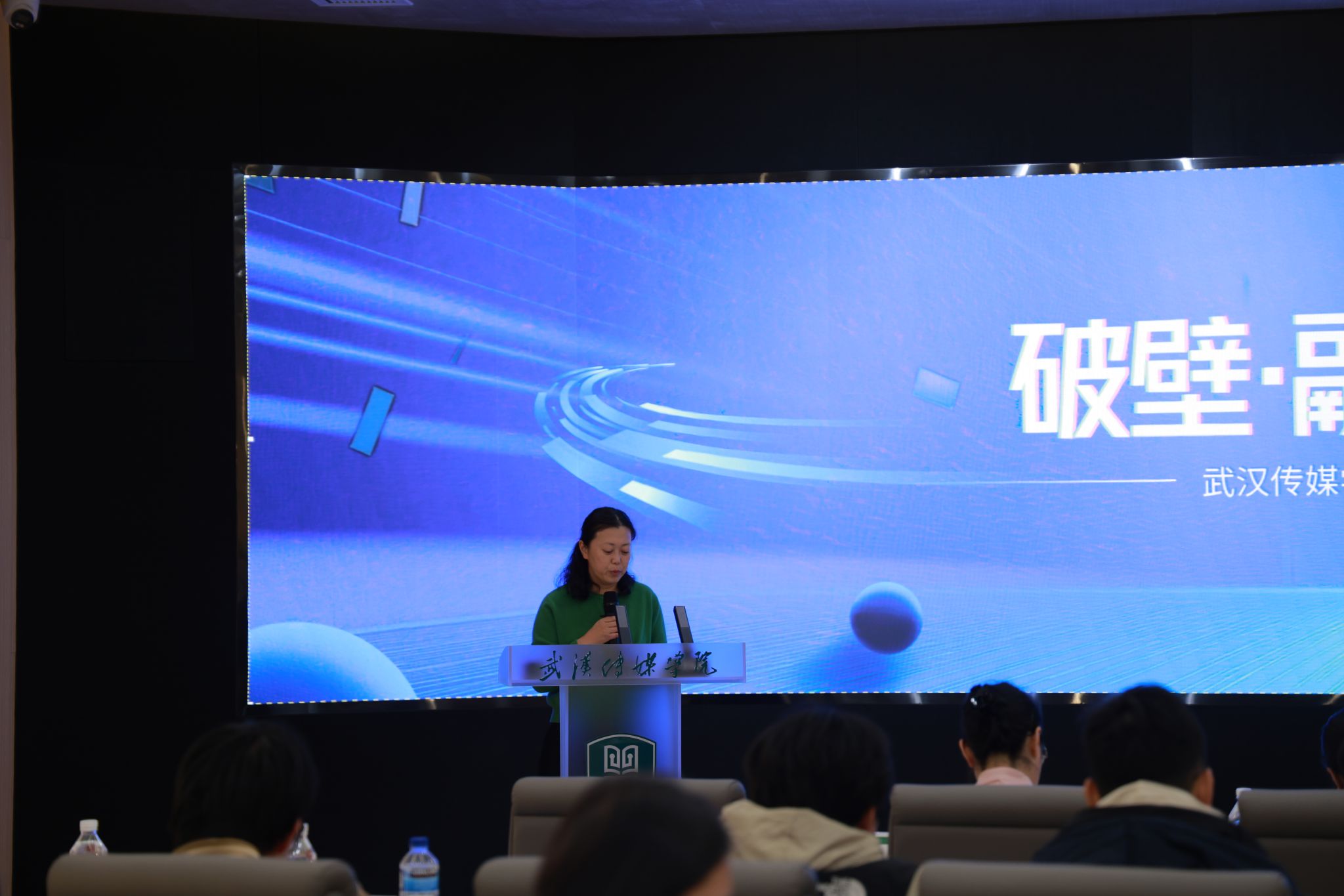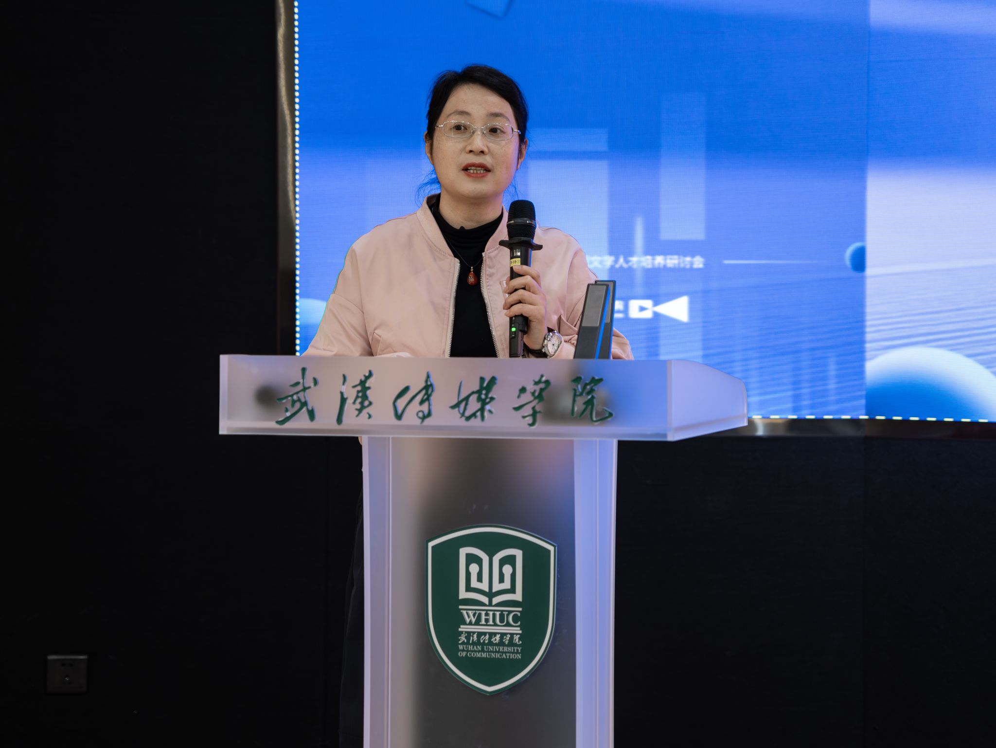 活动伊始,电影与电视学院副院长李华老师上台致辞,她首先对与会嘉宾及师生表示热烈欢迎,并指出:“‘破壁’代表勇气,‘融合’体现格局,‘共创未来’则是我们共同的愿景。我们期待通过此次研讨会,厘清新时代戏剧影视文学人才应具备的核心素养,探索更有效的人才培养机制。”