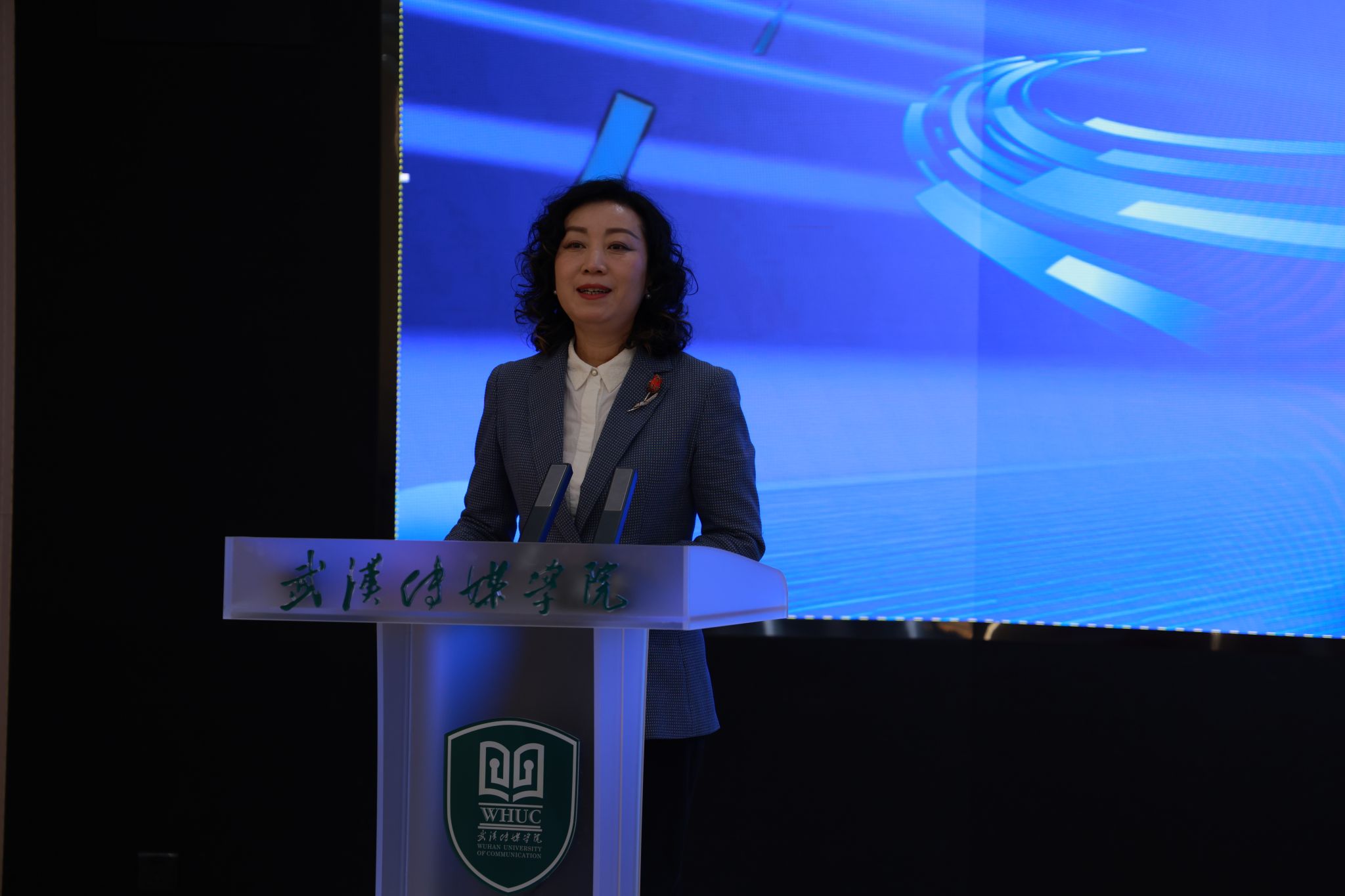随后,李道霞老师发表讲话,就学校学科建设与人才培养路径作介绍。她指出,学校聚焦戏剧影视学、新闻传播学等优势学科,持续深化“以展为情、五环联动”培养模式,积极推动“破壁融合”,通过校企共建产业学院、促进学科交叉、融合艺术与科技等方式,强化应用型、复合型传媒人才培养。此次创投会及研讨会正是学校教学改革与实践融合的重要体现,为专业建设与发展提供了有力支撑。