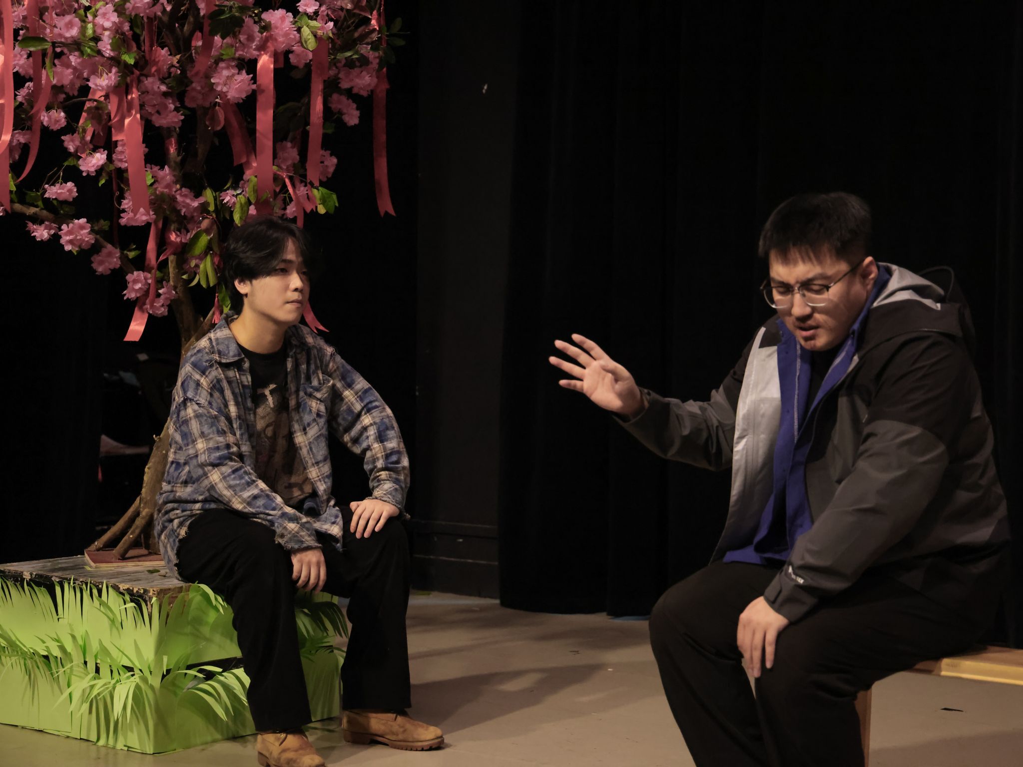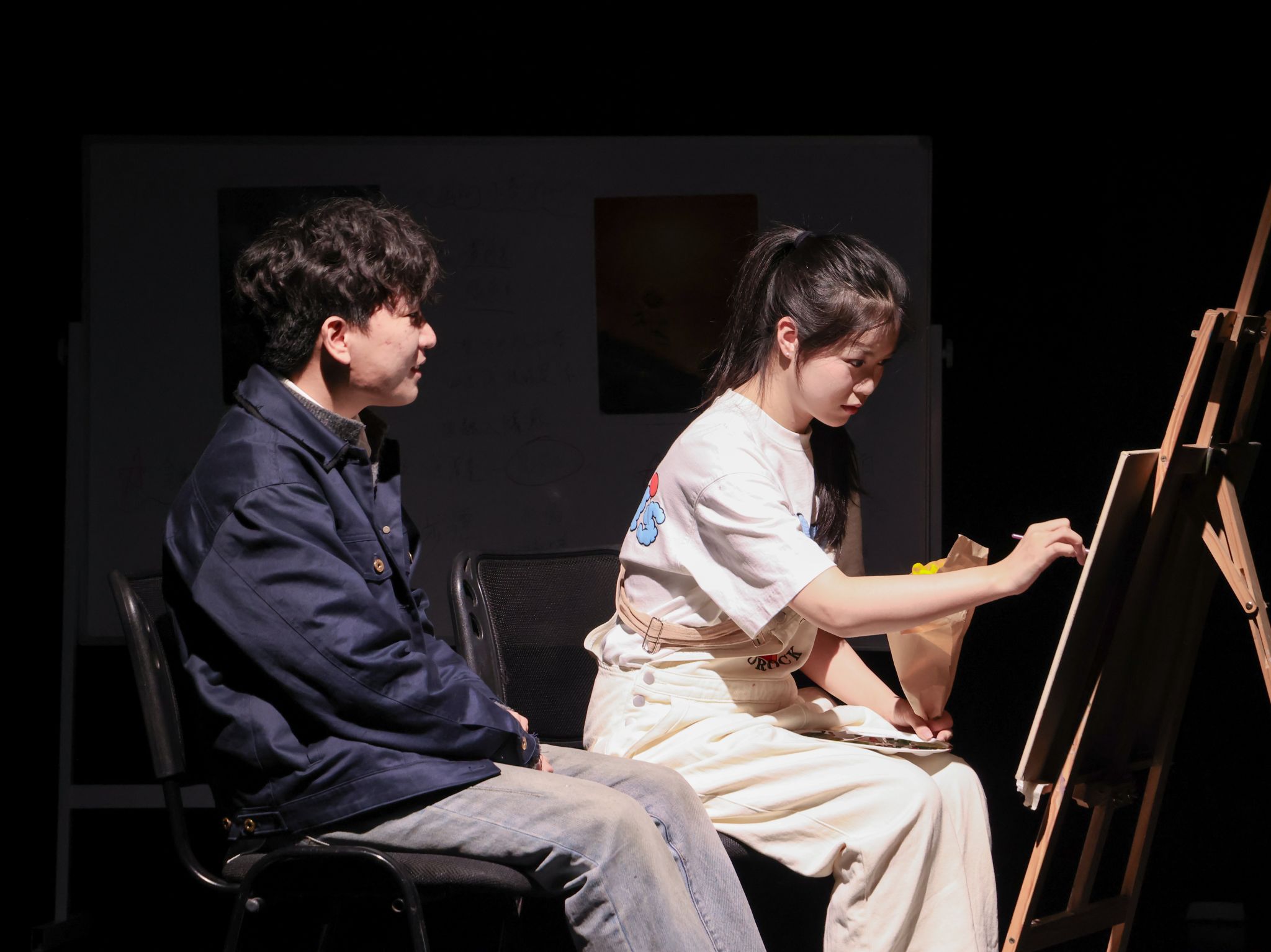当被问及两部剧目中“打破第四面墙”的设计分别呈现了怎样的观演体验时,康宗祁老师表示:“对于观众而言,这种做法加深了沉浸感与参与感。对于演员而言,这一设计则极大地拓展了表演维度,对表演的控制力、临场应变能力和情感传递精度都提出了更高要求。在与观众的实时反馈中,演员可以不断调整节奏、丰富细节,从而积累更具现场性、更富层次感的舞台经验,让每一场表演都拥有独特的生命力。”