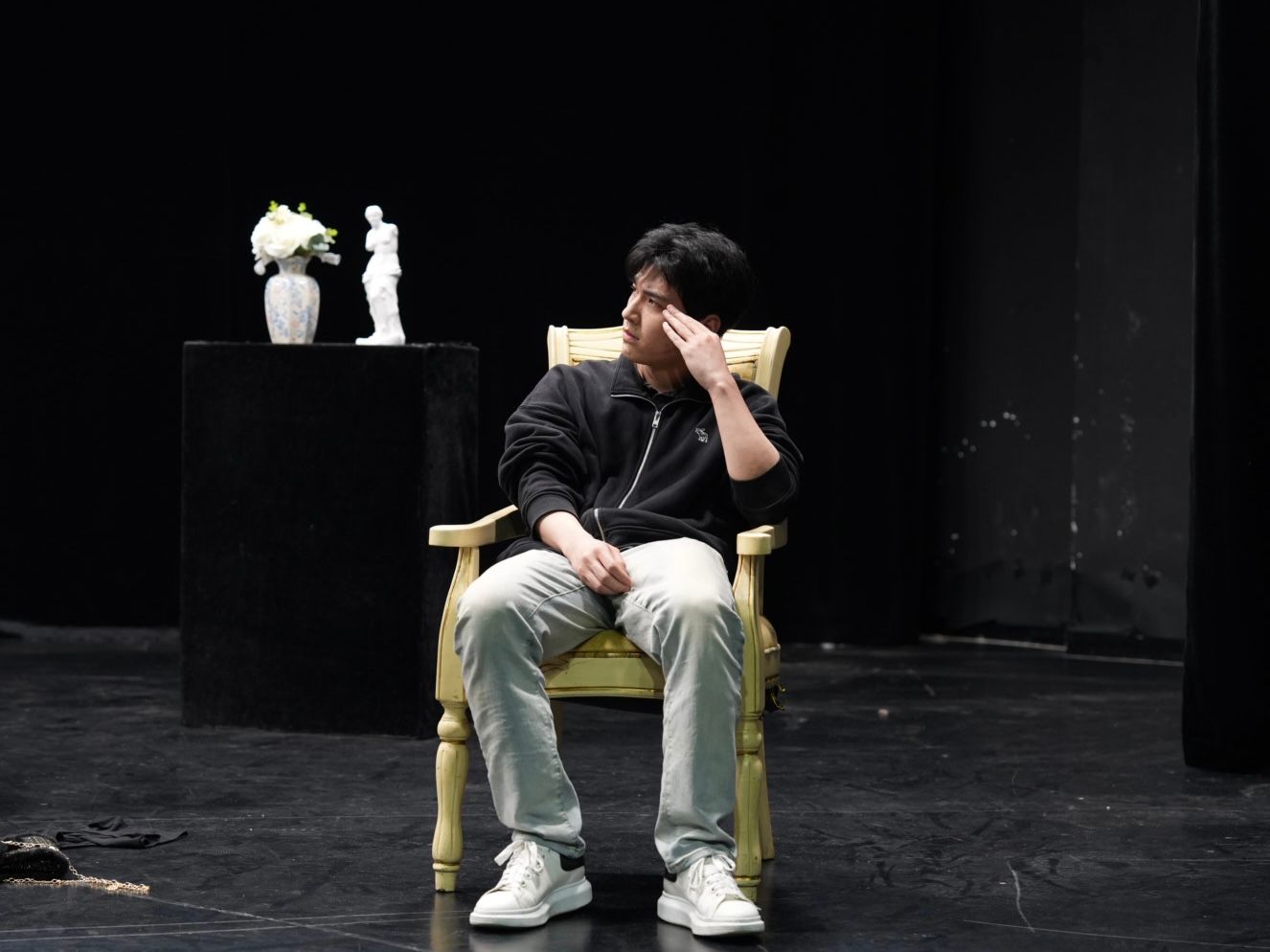 谈及剧本从诞生到落地的过程,指导老师刘子纯分享道:“从剧本诞生到演绎只有一个月的时间,大家因为各种原因难以有效组织行动,于是求助了丁杰同学担任外援。在排练厅里,大家积极沟通交流,抒发自己的表演欲望,丁杰同学拿出自己的剧本与大家共同创作,塑造角色,最终才将这部剧落地执行。”