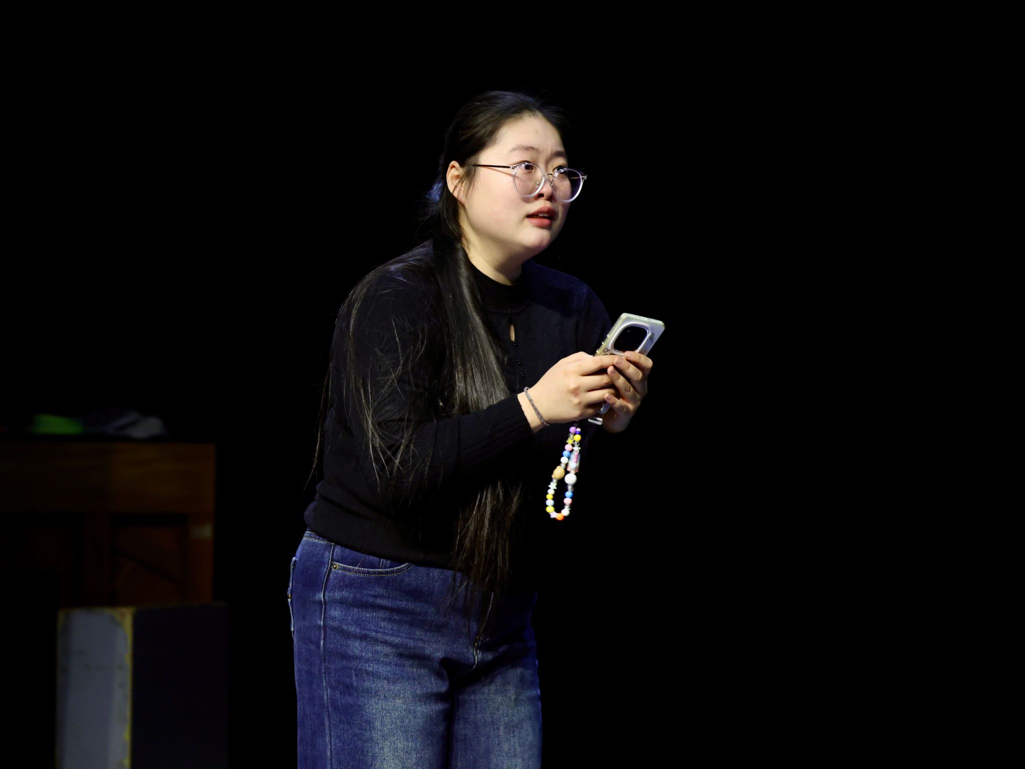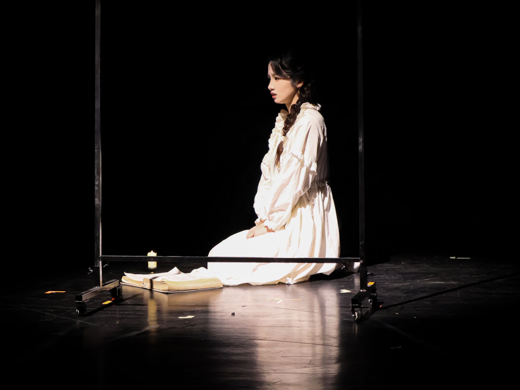 剧目《黑色夜晚》由张艺洳主演,刘英康老师指导。讲述了在一个深夜,女孩突遭父丧与巨额债务双重打击。在崩溃边缘,她因对母亲的责任放弃轻生,最终在无尽的黑暗与孤独中,被迫继续负重前行的故事。