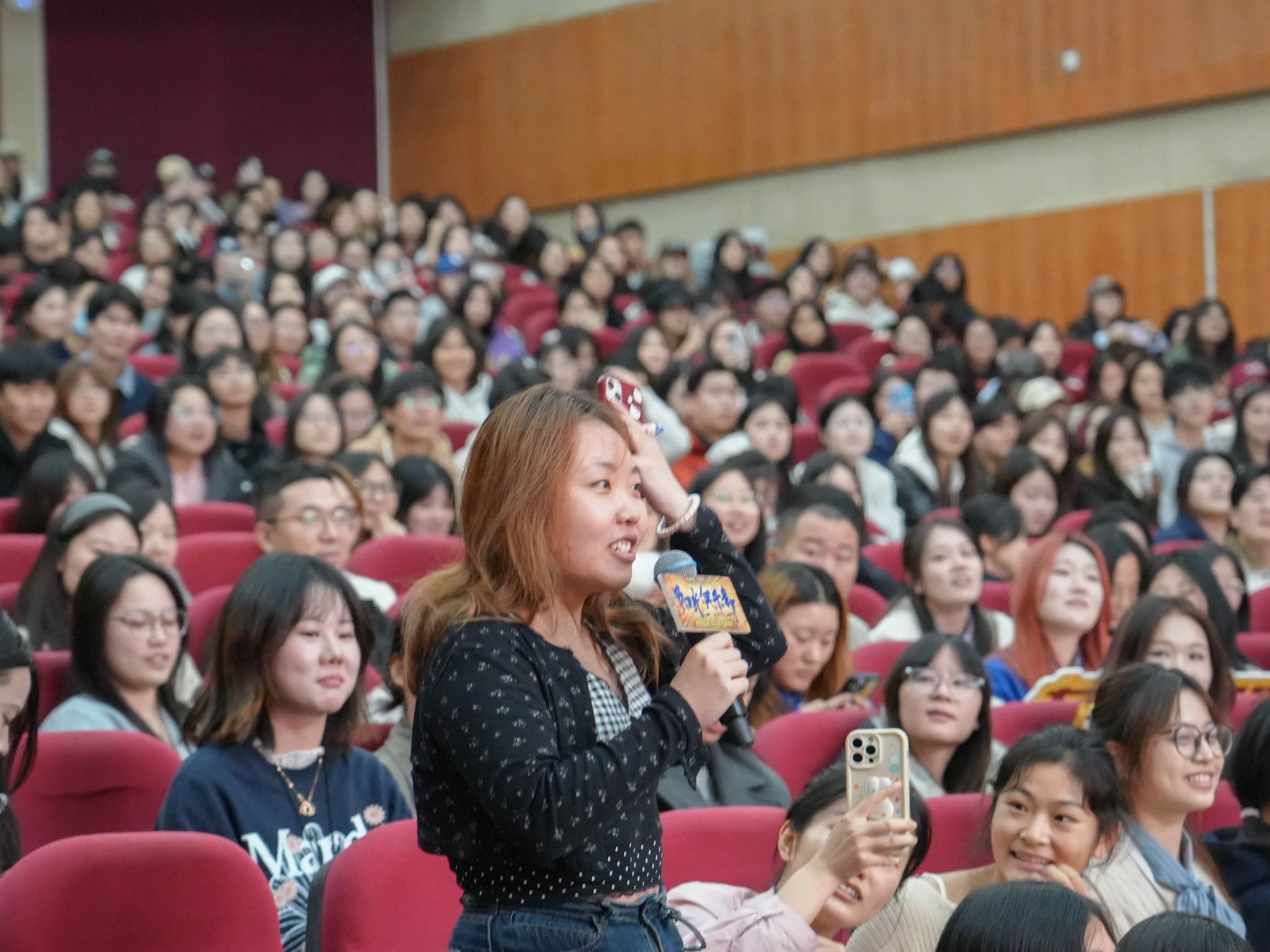 在互动提问环节,针对同学提出的主演如何通过前期调研与角色理解,塑造出吴优身上的纯真与钝感力这一问题。黄晓明表示,自己在生活中习惯以真诚态度对待他人,善于发现他人优点。他更愿意关注人的积极面,因此心态也较为简单明了。在他看来,这种生活态度在本质上与剧中角色吴优有诸多相似之处。同时,他始终秉持着为他人带来快乐的信念,这也成为他理解与诠释吴优这一角色的重要基础。